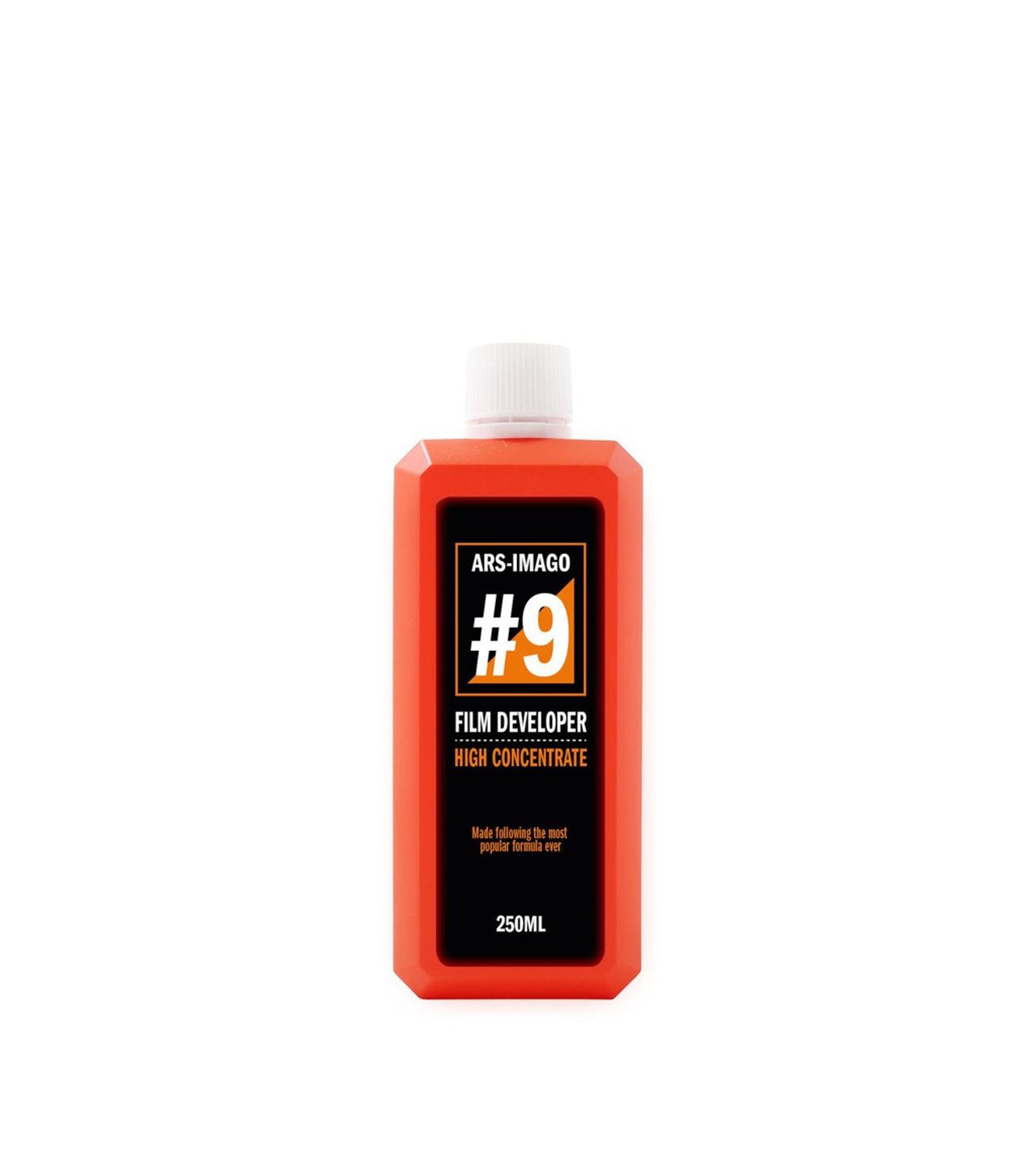 ars-imago #9 Sviluppo Pellicola è un rivelatore per pellicole in bianco e nero altamente concentrato, ad alta energia, usa e getta per il trattamento delle pellicole in bianco e nero. Preparato con la formula originale Agfa Rodinal, provata e testata da più di cento anni, è uno tra i rivelatori più antichi e più versatili mai prodotti, utilizzato e conosciuto in tutto il mondo con una delle più complete raccolte di tempi di sviluppo.