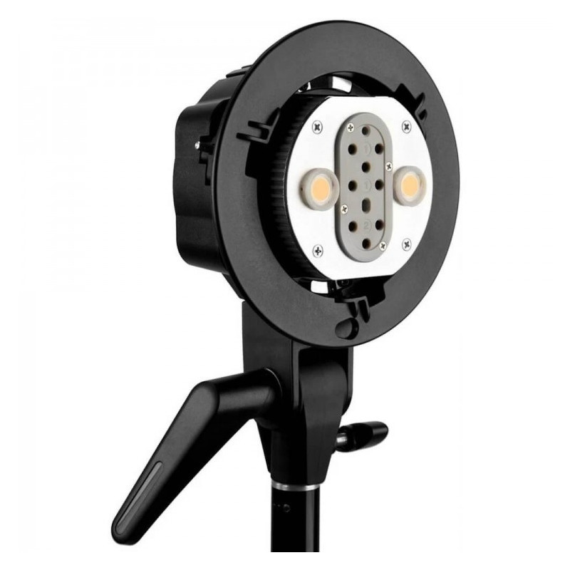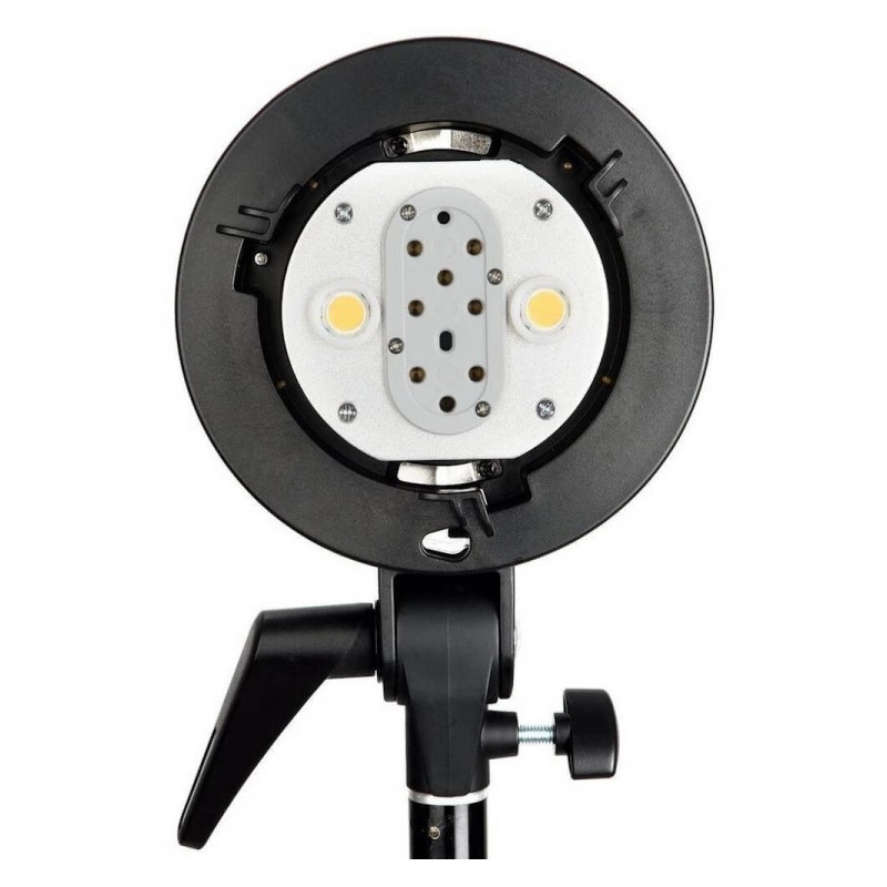 Inoltre, l'unità dispone di una connessione USB per aggiornamenti software e viene raffreddato a ventole per il controllo della temperatura. Sono inclusi un riflettore integrato e un supporto per aggiungere modificatori alla luce.