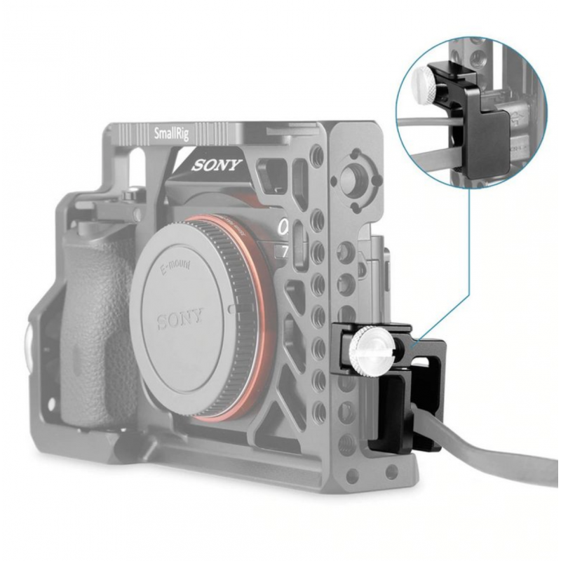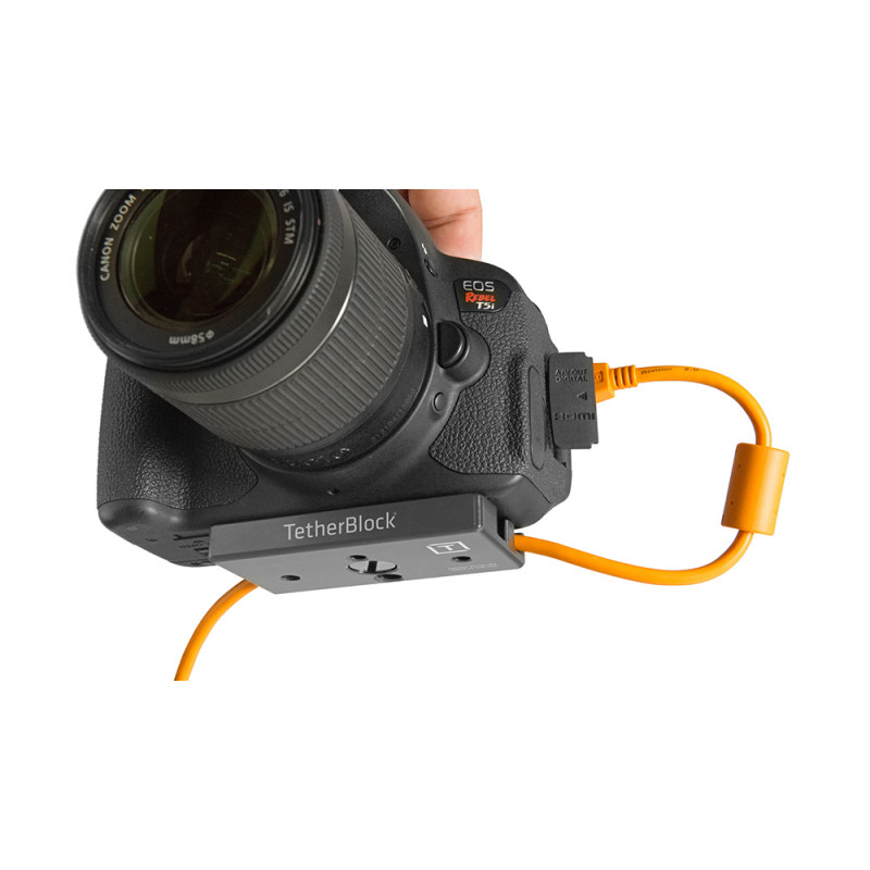 La piastra per treppiede Caruba Cablestop è un pratico strumento per mantenere il cavo della fotocamera collegato e sicuro.