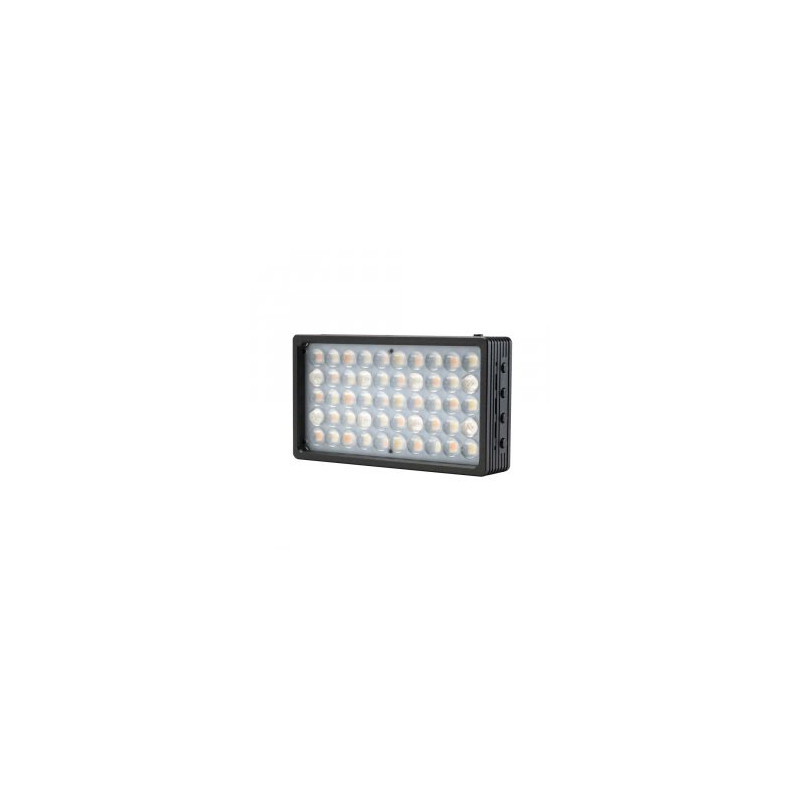 La luce è alimentata dalla batteria NP-F750 da 4400 mAH o dall'adattatore di alimentazione CA inferiore a 100-240 V. La potenza della luce è regolabile al 100% - 10% e la temperatura del colore da 3200 K a 5600 K è controllata dal dimmer sul retro della luce. Lo schermo LCD mostra l'intensità della luce, la temperatura del colore e lo stato della durata della batteria.
