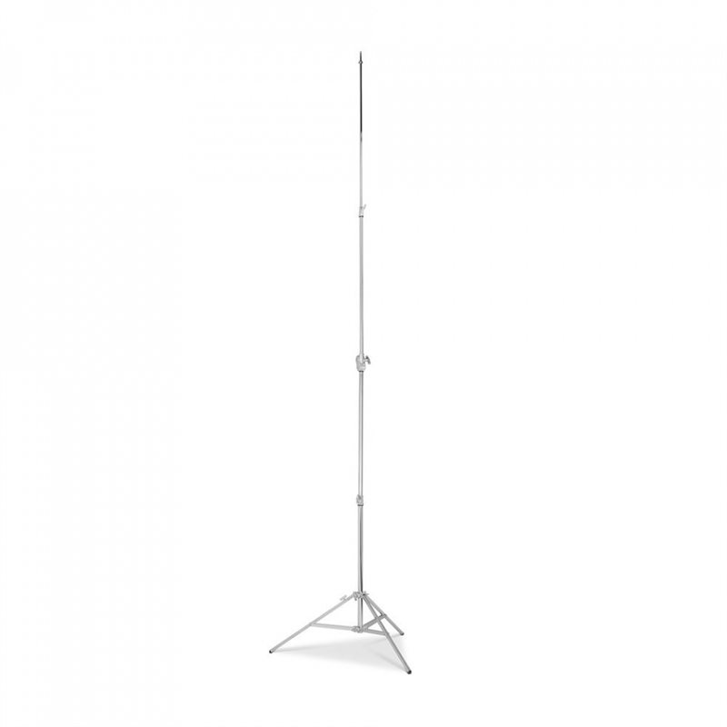 Asta a 1 sezione di 35mm di diametro completa di Snodo art. 123, Contrappeso art. 022, fascette fissacavo e stativo a colonna con ruote girevoli. Carico: da 5 a 200cm con 20 kg di contrappeso. Peso della sola asta: 4,1 kg.