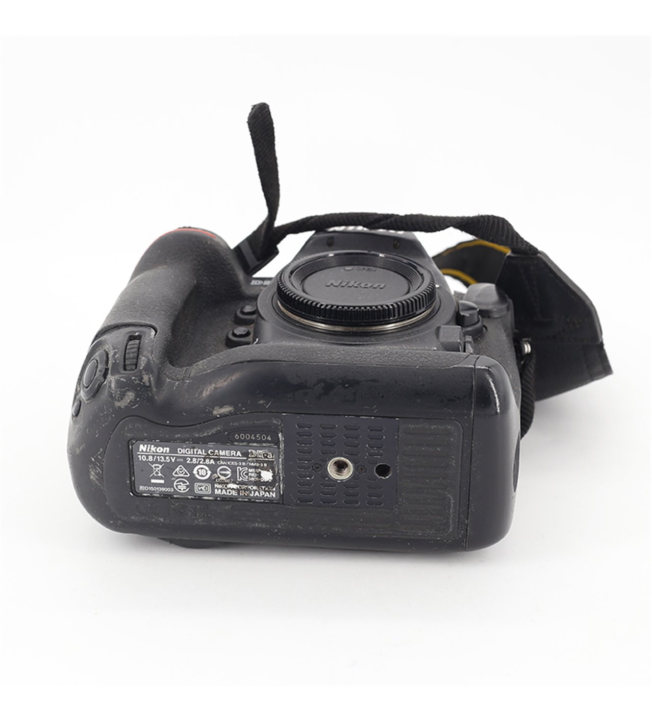 Questo esemplare presenta evidenti segni di usura estetica, come graffi e segni sul corpo macchina dovuti al normale utilizzo professionale. Nonostante l’aspetto esterno, la fotocamera è perfettamente funzionante e mantiene tutte le sue prestazioni operative.