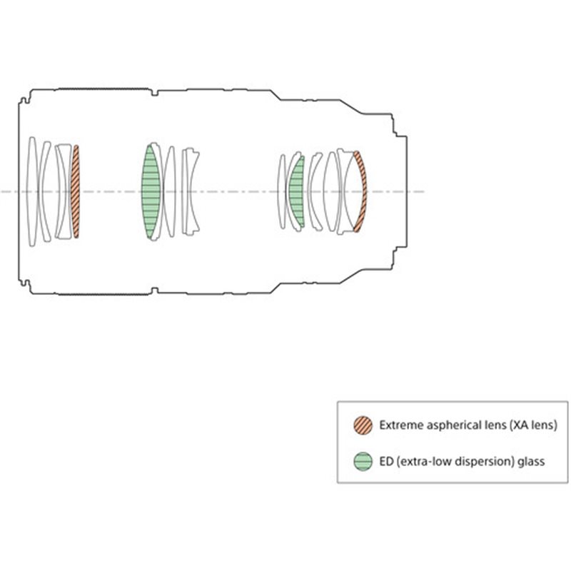 Gli elementi asferici riducono al minimo la distorsione mentre gli elementi in vetro ED (Extra-low Dispersion) offrono contrasto, risoluzione e fedeltà cromatica superiori.