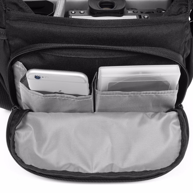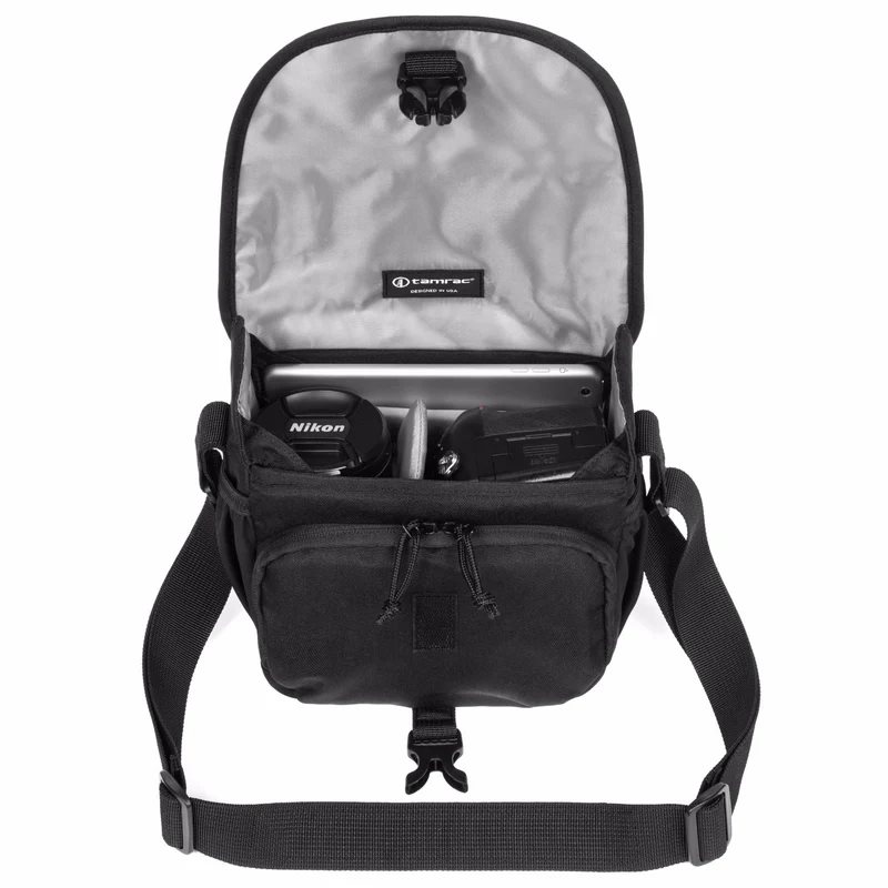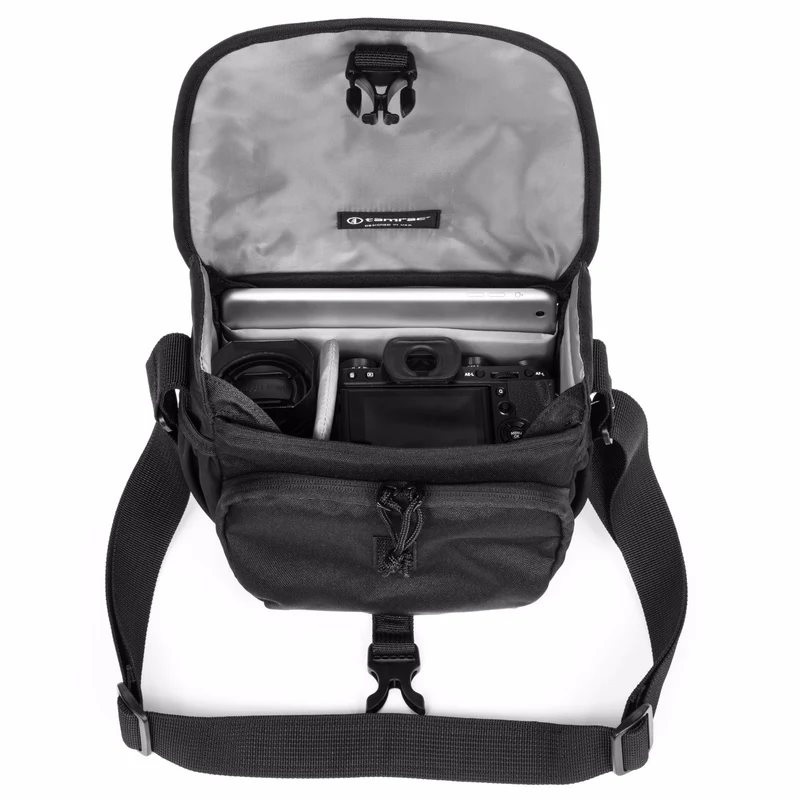 Con il suo profilo sottile, l'aspetto fresco e il design moderno in stile messenger, non sembra una borsa per fotocamera.